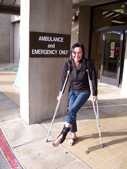 This can be a restrictive clause. For example, you are riding a bus that is pulling up to the curb but has not come to a complete stop. You elect to jump from the bus and break your leg.